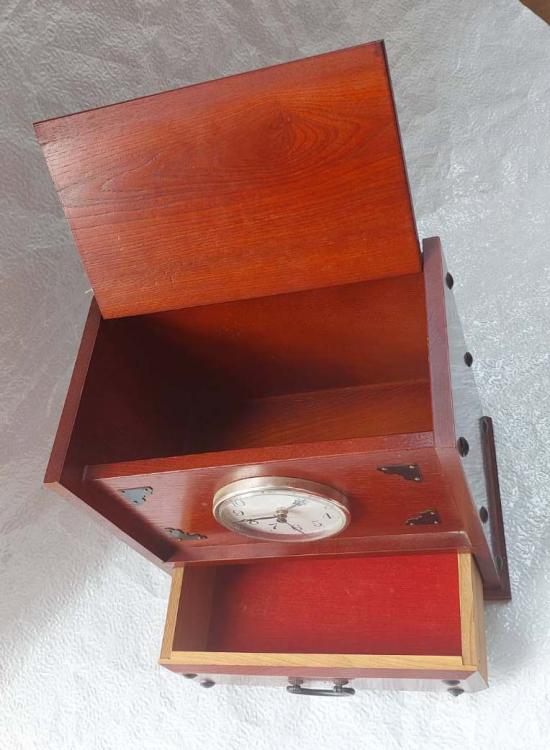 ***วัดใจ***กล่องไม้วินเทจญี่ปุ่น แบบมีนาฬิกา งานฝีมือเก่า 1 ลิ้นชัก