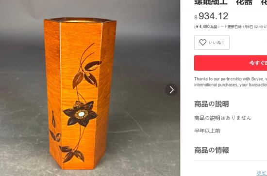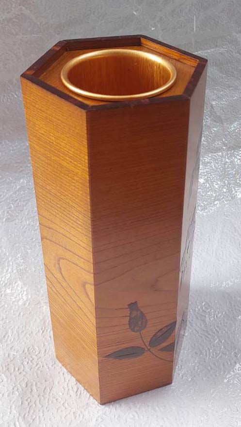 ***วัดใจ***แจกันไม้ Zelkova เป็นไม้ที่ล้ำค่าและราคาแพง ในญี่ปุ่น Zelkova ถือว่าเป็นไม้ระดับพรีเมี่ยม ตกแต่งลวดลายด้วยเปลือกหอยเป๋าฮื้อขนาดประมาณ สูง10 นิ้ว กว้าง 4.5 นิ้ว สภาพใหม่เก่าเก็บ