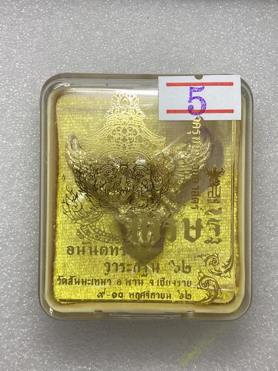 พญาครุฑมังรายศาสตร์ เศรษฐีอนันตทรัพย์ พระอาจารย์วิรุต วัดสันมะเหม้า จ.เชียงราย เนื้อสัมฤทธิ์ชุบทองขัดเงาบางส่วน พิมพ์เล็ก สูง 3 ซ.ม. กล่องเดิม |