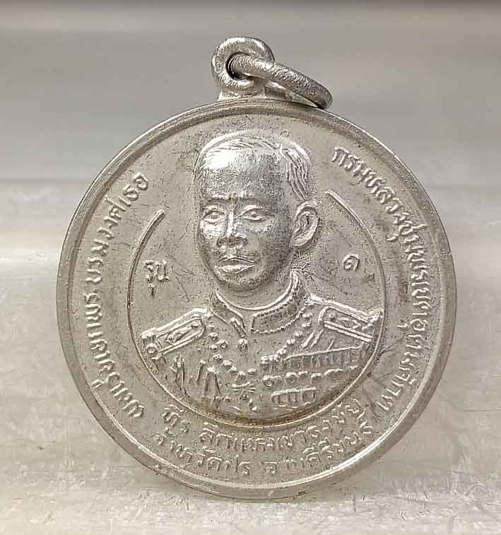 เหรียญกะไหล่เงิน กรมหลวงชุมพร ที่ระลึกแห่งเขาธงชัย จ.ประจวบคีรีขันธ์ ปี 25 รุ่น 1 +รูปหล่อกรมหลวงชุมพร ออกวัดอโศการาม ปี43 เนื้อนวะ กล่องเดิม