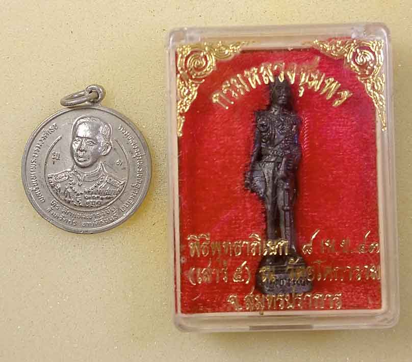 ชื่อพระเครื่อง เหรียญกะไหล่เงิน กรมหลวงชุมพร ที่ระลึกแห่งเขาธงชัย จ.ประจวบคีรีขันธ์ ปี 25 รุ่น 1 +รูปหล่อกรมหลวงชุมพร ออกวัดอโศการาม ปี43 เนื้อนวะ กล่องเดิม