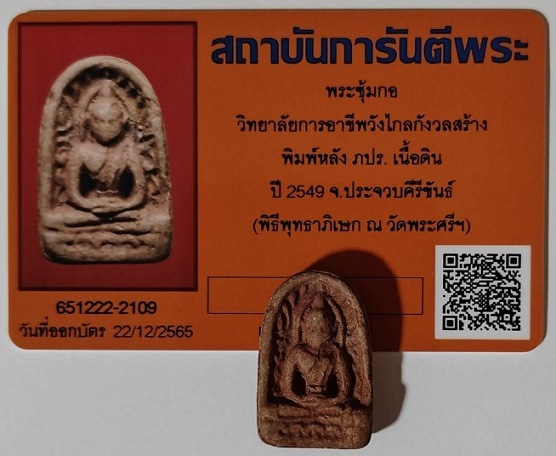 พระซุ้มกอ วิทยาลัยการอาชีพวังไกลกังวล พิมพ์หลัง ภปร. เนื้อดิน ปี 2549 จ.ประจวบคีรีขันธ์ (พิธีพุทธาภิเษก ณ วัดพระศรีฯ |