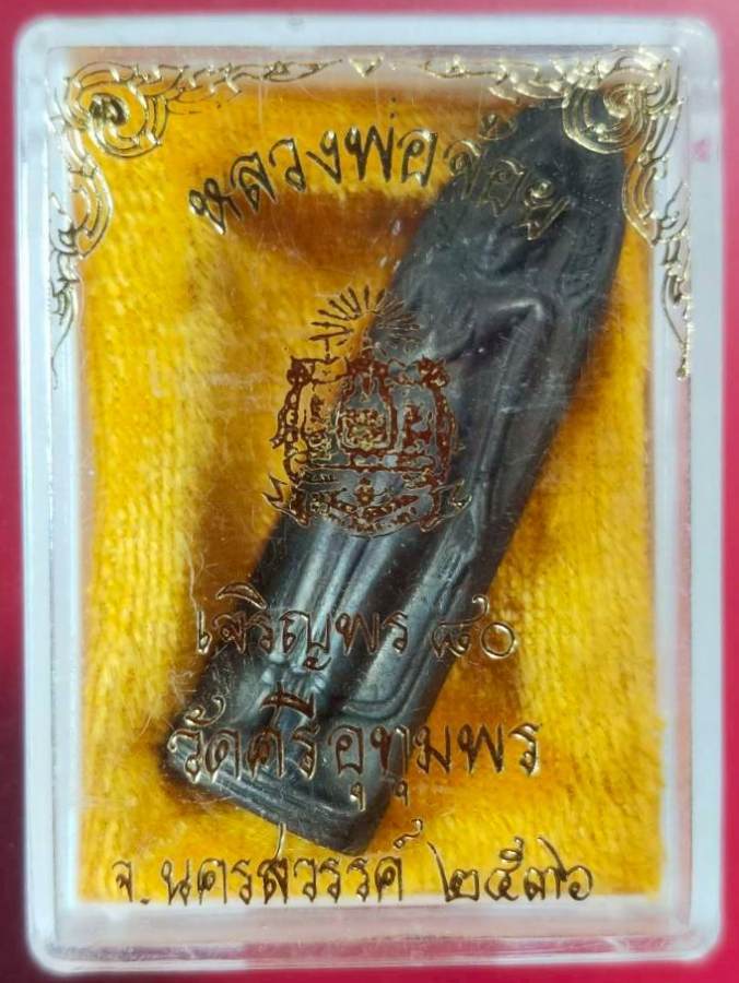 รายละเอียด พระร่วงหลวงพ่อจ้อยเนื้อทองเหลือง รุ่นเจริญพรอายุ 80 ปี วัดศรีอุทุมพร ปี 2536 สภาพสวย กล่องเดิม