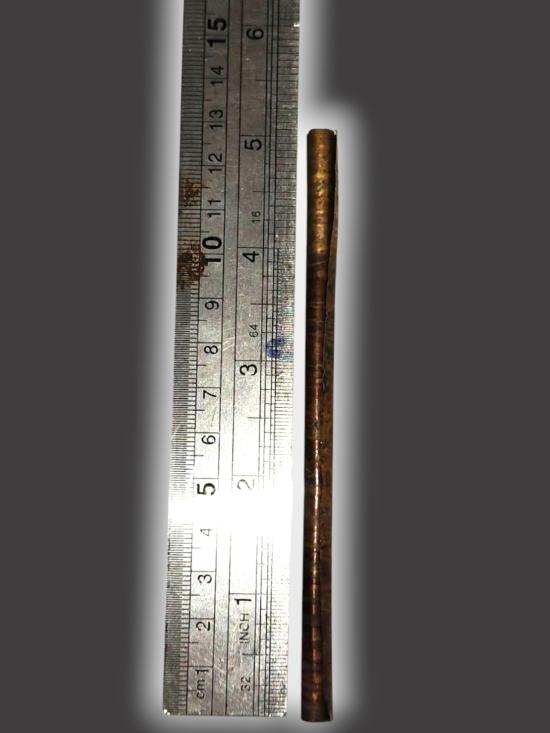 A6040.ตะกรุดทองเเดงเก่า ไม่ทราบที่ครับ ขนาด 5 นิ้ว เคาะเดียวเเดง |