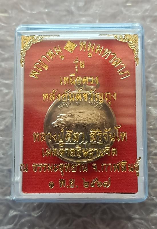 หลวงปู่มหาศิลา สิริจันโท ธรรมอุทยาน จ.กาฬสินธุ์ พญาหมูมหาลาภ รุ่น เหนือดวงหลังยันต์ขวัญถุง เนื้ออัลปาก้า |
