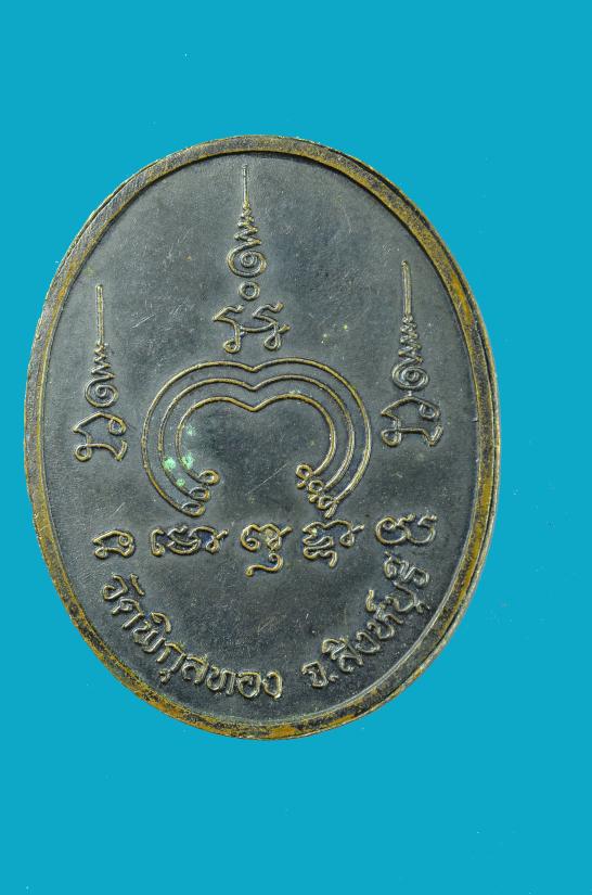 เหรียญปั๊มหนารูปไข่เนื้อทอแดงหลวงพ่อแพ วัดพิกุลทอง จ.สิงห์บุรี ปี 2540 รุ่นแพ 94