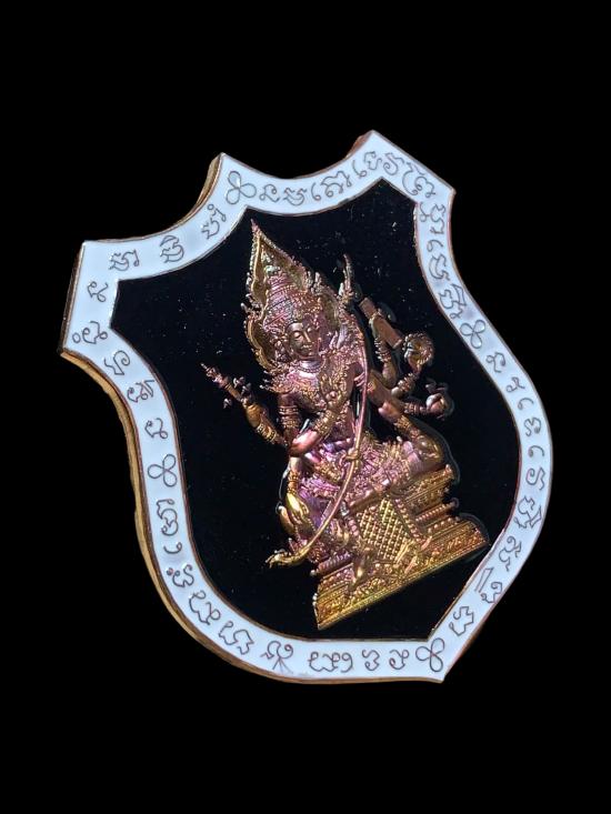 เนื้อทองแดงผิวรุ้ง ลงยาพื้นดำ ขอบขาว no.3338