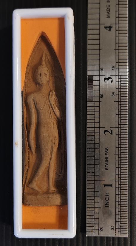 พระลีลาถ้ำหีบ เนื้อดินเผา หลวงพ่อชำนาญ วัดบางกุฎีทอง จ.ปทุมธานี ปี 2546 พร้อมกล่องเดิม