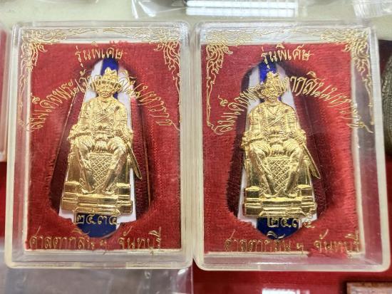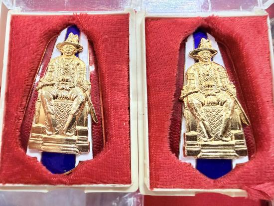 เหรียญเข็มกลัดใหญ่ สมเด็จพระเจ้าตากสิน ปี2535 ศาลตากสินฯ กะไหล่ทองลงยาธงชาติ สวยเดิมๆ 2 กล่อง