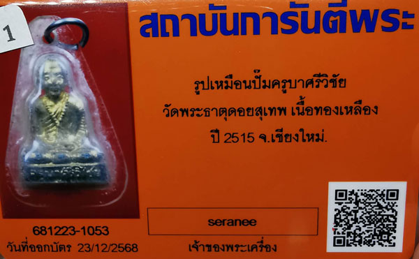 รูปเหมือนครูบาศรีวิชัย วัดพระธาตุดอยสุเทพ เนื้อทองเหลือง ปี2515 จ.เชียงใหม่ + บัตรG-pra สภาพสวยเดิมค่ะ |