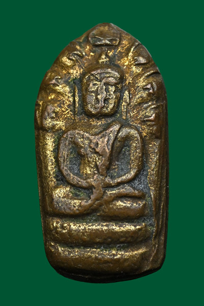 ปรกมะขามฐานสองชั้น(บล็อกแตกนิยม)วัดอนงค์รุ่นแรกเนื้อทองแดงกะไหล่ทอง |