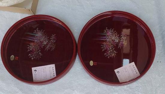 ถาดไม้เคลือบเงา (Wajima-nuri lacquerware) งานศิลปะโรยผงทอง ถาดเคลือบแล็กเกอร์รุ่นพิเศษ 2ใบ 2ขนาด สภาพใหม่เก่าเก็บ เป้นถาดบุชา