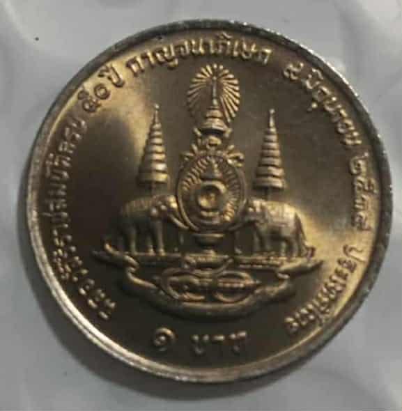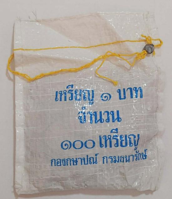 เหรียญ 1 บาท ฉลองสิริราชสมบัติครบ 50 ปี กาญจนาภิเษก พ.ศ.2539 ยกถุง 100 เหรียญ จำนวน 1 ถุง ซีลเดิม ตะกั่วอยู่ครบ ถุงปิดไม่เคยเปิดออก #4#
