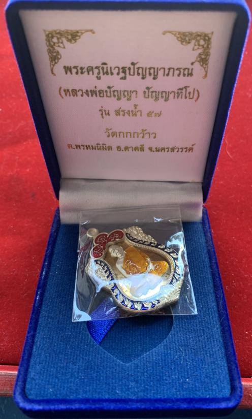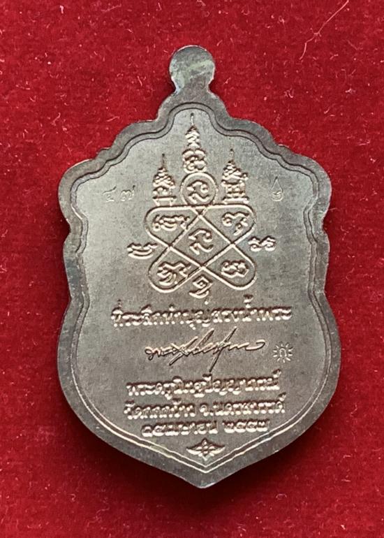 เหรียญเสมา ที่ระลึกสรงน้ำพระ หลวงพ่อปัญญา วัดกกกว้าว จ.นครสวรรค์ เนื้อนวะหน้ากากเงิน ขอบเงิน |
