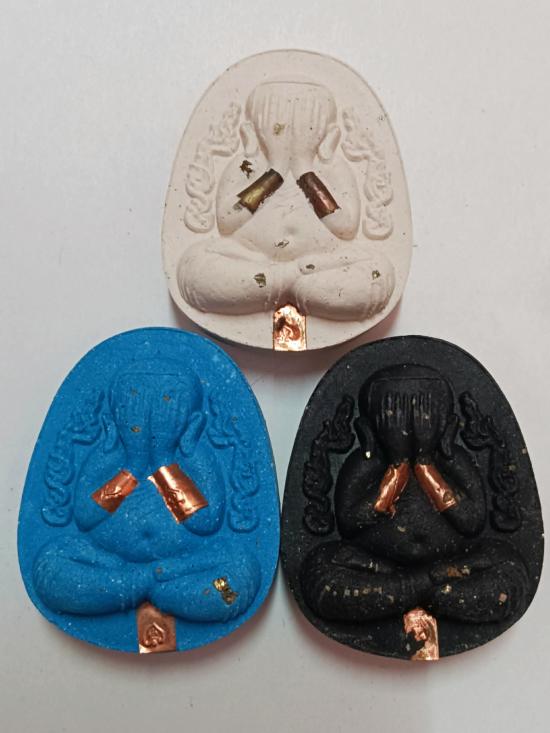 เนื้อผงเจ้าน้ำเงิน ฝังตระกรุดทองแดง1ดอก+กำไล โรยผงแร่
