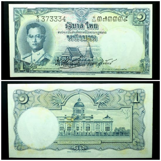 ในหลวง ร๙ ธนบัตรแบบ 9 ราคา 1 บาท รุ่น 5 ลายเซ็น เภา - เกษม UNC จำนวน 2 ฉบับ |