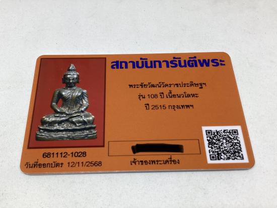 พระชัยวัฒน์วัดราชประดิษฐ์ รุ่น 108 ปี เนื้อนวโลหะ ปี 2515 หลวงปู่ทิมปลุกเศก มาพร้อมบัตร GPra