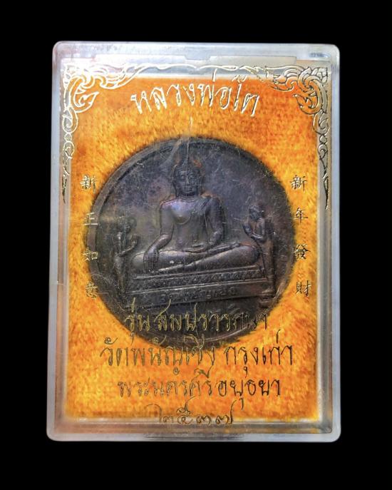 เหรียญหลวงพ่อโต หลังมังกร วัดพนัญเชิง รุ่นสมปรารถนา พ.ศ.2537 วัดพนัญเชิง จ.พระนครศรีอยุธยา พิธีพุทธาภิเษกยิ่งใหญ่ ปลุกเสกโดยพระสายอยุธยา เช่น หลวงปู่ทิม วัดพระขาว หลวงพ่อรวย วัดตะโก หลวงพ่อมี วัดมาร |