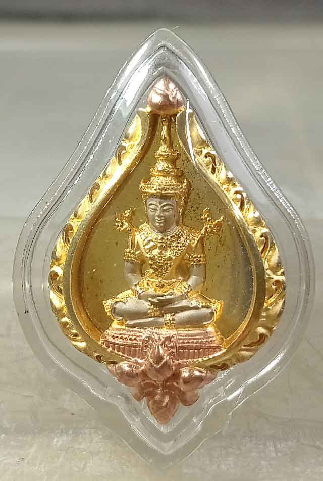 ชื่อพระเครื่อง เหรียญพระแก้วมรกต (พิมพ์ดอกบัว) หลัง ภปร. โรงพยาบาลภูมิพลฯ จัดสร้าง ปี 2547 เนื้อเงินสามกษัตริย์ ตอกโค๊ต (หมายเลข ๗๓๖๘) เลี่ยมกันน้ำ ไม่มีกล่อง