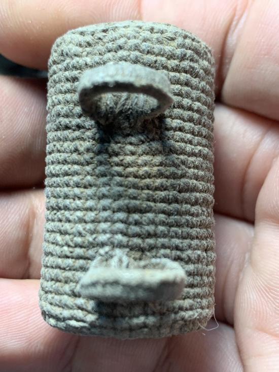ตะกรุดถักเชือกเก่า ข้างในกดแล้วนิ่มๆเหมือนใบลาน ไม่ทราบที่ครับ |