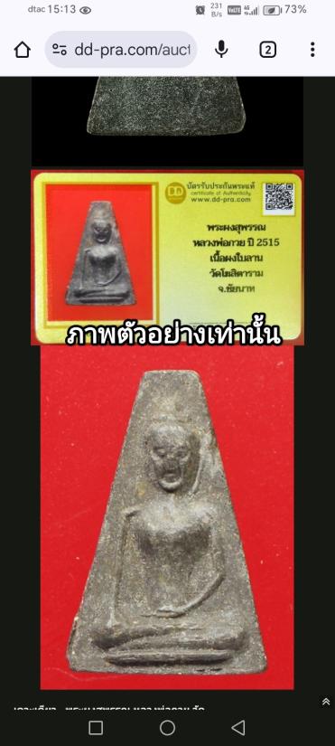 พระพิมพ์ผงสุพรรณหลวงพ่อกวยปี15เนื้อผงน้ำมันโซนปรกโพธิ์9ใบเคาะเดียวแดง |