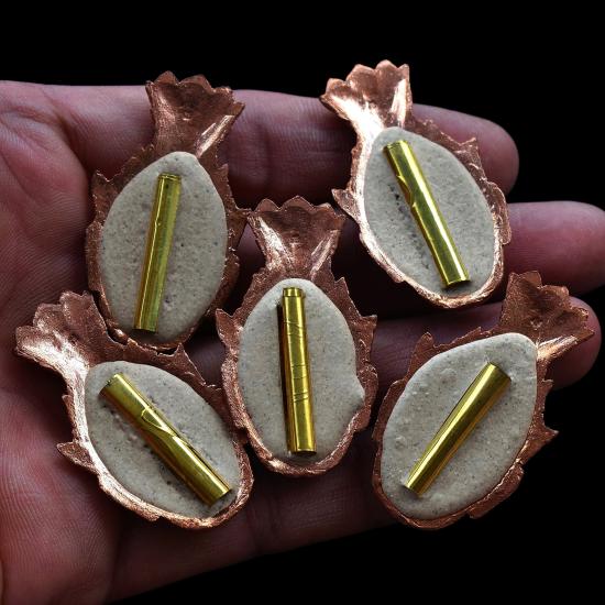 ชุด 5 องค์...เศียรปู่ดวงดีทวีโชค เนื้อทองแดง ด้านหลังฝังตะกรุดอุดผงมวลสาร ปี 2558 หลวงปู่เฉลิม วัดบุญนาคประชาสรรค์ จ.สมุทรสงคราม พร้อมใบฝอยเดิมจากวัด สภาพพระตามรูปที่ลงทุกประการ (ขนาดประมาณ 4.6 x 2.6 ซม.)