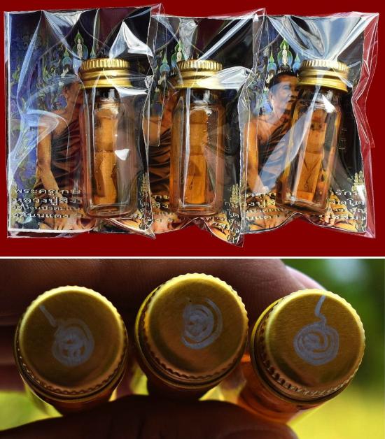 ชุด 3 ขวด...กุมารทองคะนองทรัพย์ในน้ำมัน ปี 2559 หลวงปู่สิงห์ วัดบ้านป่าตะแบง จ.นครราชสีมา พร้อมซองรูปเดิมจากวัด