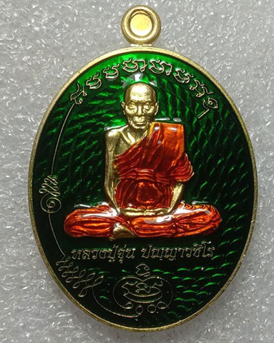 วัดใจ..เหรียญมนต์พระกาฬ หลวงปู่จุ่น ปัญญาวชิโร วัดมุขะอุดม อ.ธาตุพนม จ.นครพนม เนื้อทองทิพย์ลงยา หมายเลข ๓
