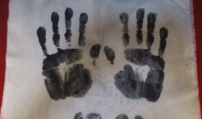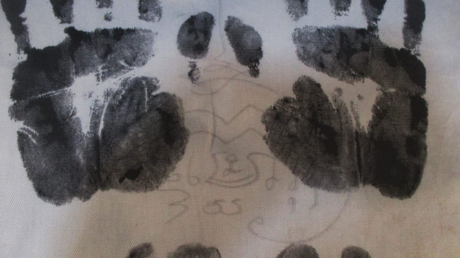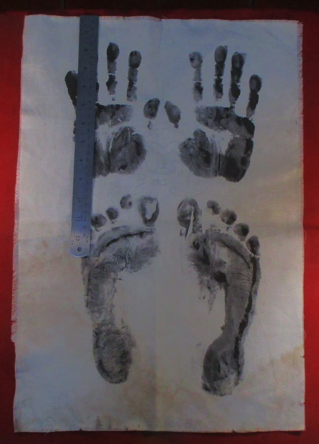 ผ้ายันต รอยมือ รอยท้าว ไม่ทราบที่ มีรอยจารยันต์ด้วยดินสอ ครับ