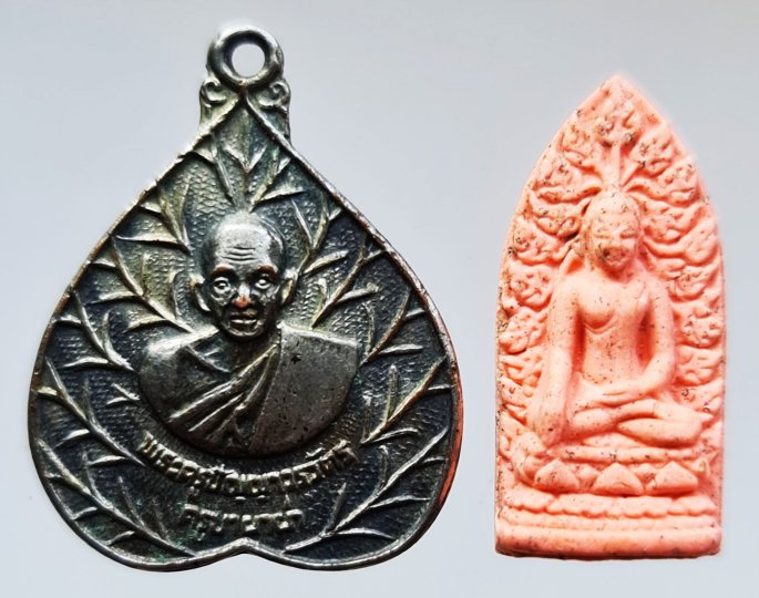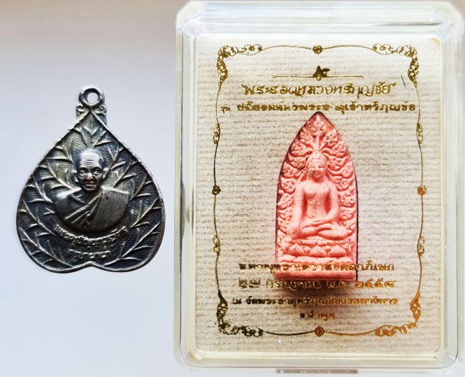 << วัดใจ >> เหรียญใบโพธิ์ ครูบาผาผ่า + พระรอดหลวงหริภุญชัย รุ่นปลียอดฉัตรพระธาตุเจ้าหริภุญชัย