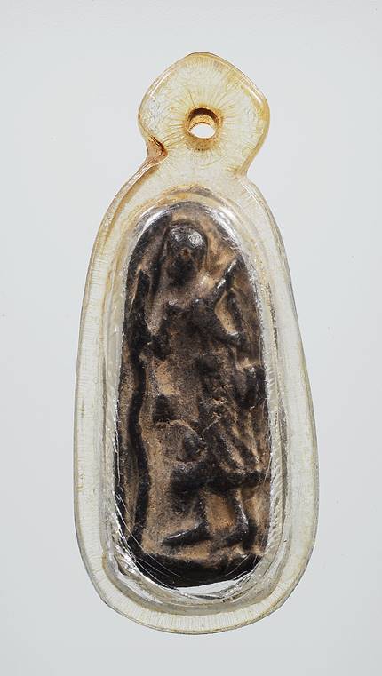 พระสิวลีหลวงพ่อกวย วัดโฆสิตาราม เนื้อดำ (มีย่าม) เลี่ยมเก่าครับ
