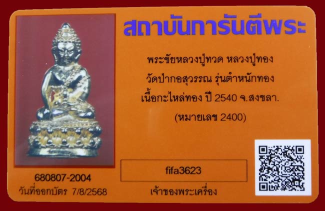 แดงที่เคาะแรก !!! พระชุด 8 องค์ (ฝังแผ่นโค๊ตเงิน+หมายเลข) รุ่นตำหนักทอง หลวงปู่ทวด หลวงพ่อทอง วัดป่ากอ จ.สงขลา ปี2540 กล่องเดิม + บัตรพระแท้