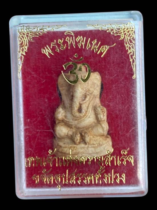 พระพิฆเนศ เนื้อผง สีครีม พิมพ์นั่งเต็มองค์ รายละเอียดองค์พระชัด สภาพตามการเก็บรักษา บรรจุในกล่องเดิม ลักษณะงานสายบูชา พระพิฆเนศเป็นเทพแห่งความสำเร็จ ปัญญา และการเริ่มต้นใหม่ เหมาะสำหรับผู้ทำการค้า งานสร้างสรรค์ และผู้ที่ต้องการความราบรื่นในชีวิตประจำวัน