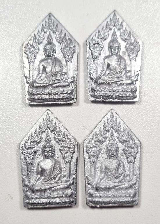 พระขุนเเผน แรงครู พลิกชีวิต พระอาจารย์แจ้ วัดน้อมประชาสรรค์ เหรียญหล่อตะกั่วมหายันต์ 4องค์ ไม่มีกล่อง (A) |