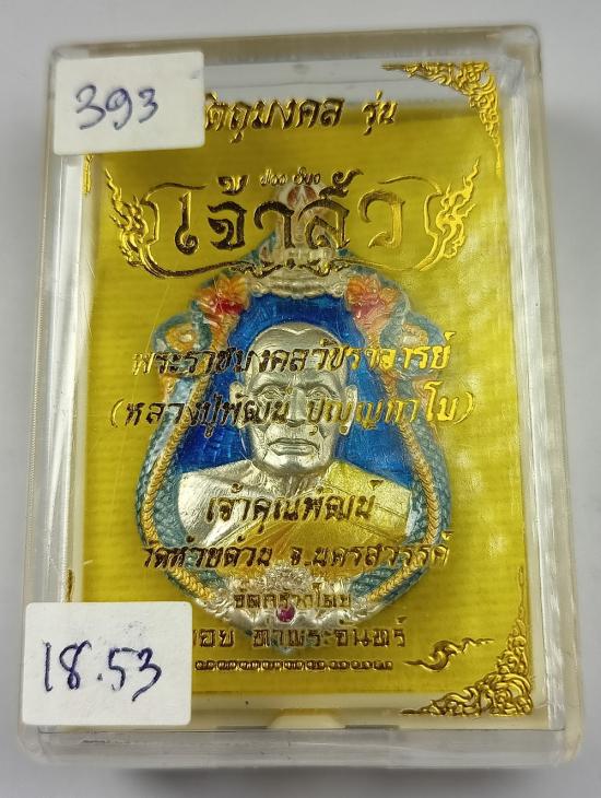 เหรียญ "เจ้าสัว" หลวงพ่อพัฒน์ วัดห้วยด้วน (จัดสร้างโดย บอย ท่าพระจันทร์) เนื้อเงินลงยาขุ้ยพื้น เบอร์ 393 พร้อมกล่องครับ (จมูกมีตำหนิพิจารณาให้ชอบก่อนค่อยเคาะนะครับ)(เหรียญหนัก 18.53 กรัม)