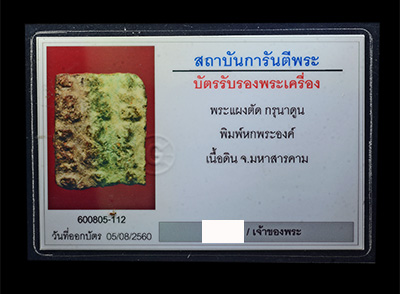 พระเนื้อดินแผงตัดกรุนาดูน หรือ พระกรุพระบรมธาตุนาดูน "พิมพ์หกพระองค์" จ.มหาสารคาม ..สภาพสวยเดิม(ตามภาพ)..โดยพระเนื้อดินแผงตัดกรุนาดูนเป็นพุทธศิลปะทวารวดี เป็นหลักฐานทางประวัติศาสตร์ที่สำคัญโดยเฉพาะการแสดงให้เห็นความรุ่งเรืองของพุทธศาสนาสมัยทวาราวดีในสมัยพุทธศตวรรษที่ 13-15 โดยแตกกรุในปี พ.ศ. 2522 ที่ ต.นาดูน อ.นาดูน จ.มหาสารคาม โดยพบหลักฐานว่าเป็นแหล่งโบราณคดีมีอายุอยู่ในราวพุทธศตวรรษที่ 12 ถึงพุทธศตวรรษที่ 16 มีร่องรอยของเมืองโบราณยุคทวารวดี การพบโบราณวัตถุ ตลอดจน พระพุทธรูปพระพิมพ์ ศิลปะทวารวดี จำนวนมากมายหลายชิ้น ที่สำคัญก็คือพบพระบรมสารีริกธาตุ บรรจุในผอบ ประดิษฐานในองค์พระสถูปทรงระฆังจำลองสูง 24.4 เซนติ เมตร สามารถถอดแยกได้เป็นสองส่วน ซึ่งต่อมามีการจัดสร้างเป็นองค์พระธาตุนาดูนขึ้น และพบพระพิมพ์ดินเผาที่เป็นส่วนผสมระหว่าง ดิน เหนียว ศิลาแลง แกลบ ทราย และกรวด จำนวนหนึ่ง พระพิมพ์ที่พบส่วนใหญ่ จะแสดงให้เห็นถึงศิลปะทวารวดีอันเป็นรากฐานการเผยแพร่พระพุทธศาสนาคติหินยานในบริเวณสุวรรณภูมิอย่างชัดเจนองค์พระส่วนมากจะเป็นพระแผง ซึ่งหมายถึง พระพิมพ์ขนาดเขื่องใหญ่กว่าฝ่ามือ และมีองค์พระพุทธปรากฏอยู่หลายองค์ ศิลปะแสดงให้เห็นอิทธิพลของมอญทวารวดีที่เผยแพร่จากภาคกลางและกระจายตัวอยู่ในแถบภาคอีสาน แสดงให้เห็นถึงการติดต่อสัมพันธ์ทางพุทธศาสนาอย่างเด่นชัด มีการพบพระพิมพ์ต่างๆ ที่เรียกกันว่า กรุนาดูน ถึง 40 กว่าพิมพ์ บ้างทำเป็นองค์พระพุทธรูปนั่งบนบัลลังก์ ที่เรียกกันว่าพระนั่งเมือง บ้างทำเป็นพระพุทธรูปยืนในลักษณาการตริภังค์ อันหมายถึงการผ่อนคลายอิริยาบถสามส่วน ได้แก่ การหย่อนไหล่ การหย่อนสะโพก และการหย่อนหัวเข่า ปรากฏในรูปพระลีลานอกจากนี้ยังมี พระนาคปรก มีทั้งปรกคู่และปรกเดี่ยว บางครั้งพบว่ามีการนำพระแผงมาตัดให้เล็กลงเหลือเฉพาะองค์ก็มี การพบพระกรุนาดูนในระยะแรกนี้นั้น ปรากฏว่ามีพระจำนวนมากที่ชาวบ้านแห่พากันเข้ามาขุดค้น จึงทำให้พระกรุนาดูนแพร่หลายเข้าสู่วงการพระและเป็นที่รู้จักกันอย่างกว้างขวาง บางส่วนกรมศิลปากรได้เก็บรวบรวมไว้ และเนื่องจากเห็นว่า ขอนแก่นเป็นจังหวัดใหญ่ และมีพิพิธภัณฑสถานแห่งชาติที่มีความแน่นหนาและมั่นคง จึงเก็บรวบรวมพระนาดูนจำนวนหนึ่งไว้ที่ขอนแก่น ทำให้พระกรุนี้หายากด้วยผู้ที่มีครอบครองต่างกล่างถึงพุทธคุณที่พบคือ เสน่ห์ เมตตามหานิยม แคล้วคลาดปลอกภัย คงกะพันชาตรี โชคลาภอำนาจวาสนา พระพิมพ์ประภามณฑล ..สภาพสวยเดิม..เนื้อโซนนิยมมะขามเปียก..ปัจจุบันพบเจ