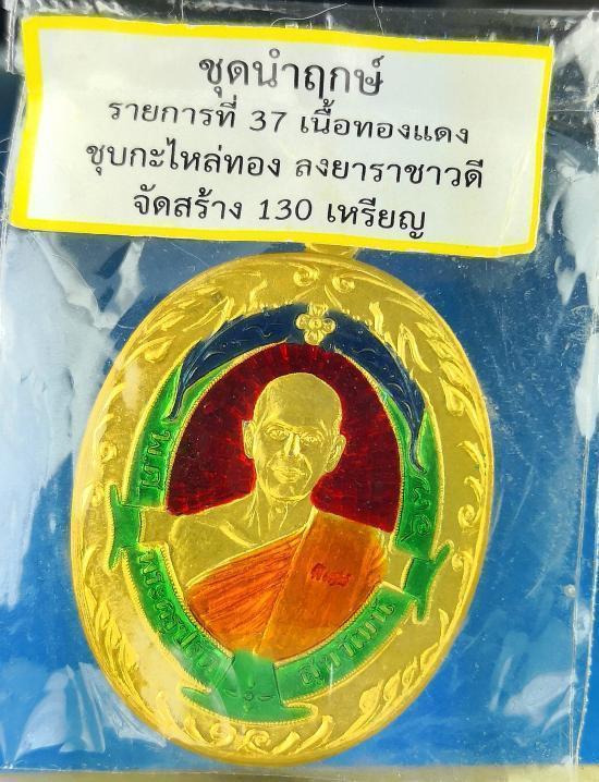 1300-เคาะเดียว เหรียญรูปไข่ พิมพ์แกะสด รุ่น อุดมทรัพย์ ชุดทองคำนำฤกษ์ (เนื้อชนวนมวลสาร ๒๐๐ ล้าน) พระอาจารย์ต้อม วัดท่าสะแบง ร้อยเอ็ด เนื้อทองแดงชุบกะไหล่ทอง ลงยาราชาวดี เลข ๙๒