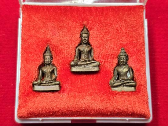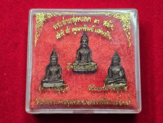 เคาะเดียวแดง พระสามสุดยอด 3 สมัย ( อู่ทอง,สุโขทัย,เชียงแสน ) รุ่น เสาร์ 5 คูณทรัพย์แสนล้าน เนื้อนวโลหะ พ.ศ. 2539 พร้อมกล่องเดิมๆ
