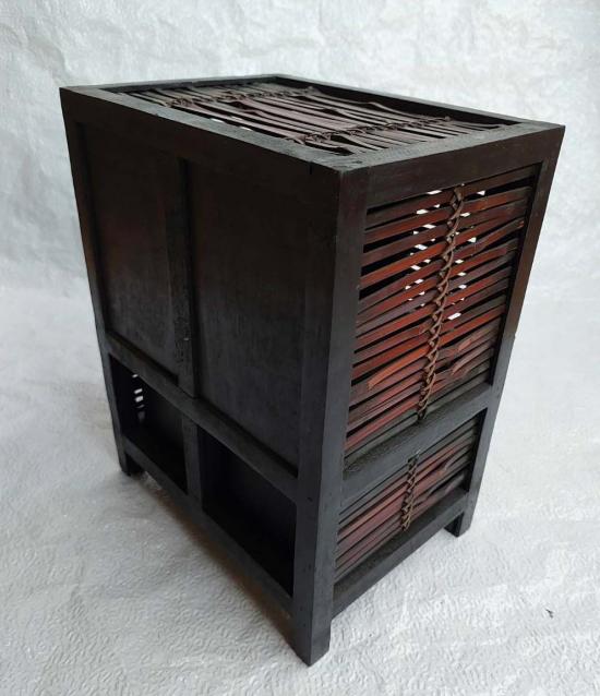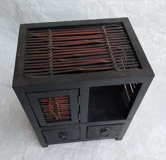 ***วัดใจ***กล่องไม้วินเทจญี่ปุ่น งานฝีมือเก่า 2 ลิ้นชัก 1บานเปิด สไตล์ย้อนยุค ผสมงานไม้ไผ่