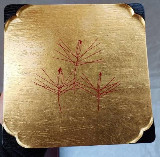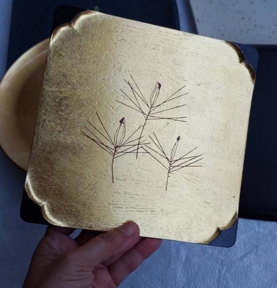 งานสี่เหลี่ยมจัตุรัส ขอบโค้งมน งานไม้ เคลือบด้วยทองคำเปลวแบบญี่ปุ่น ขนาดเล็ก ย 19 x ก 19 cm.