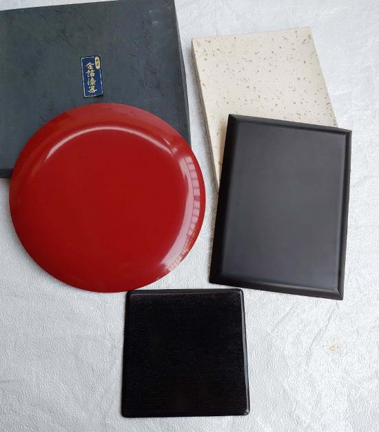 ถาดเนื้อไม้ เขินญี่ปุ่น (Japanese lacquerware) ซึ่งเป็นงานศิลปะการลงรักปิดทอง มี 3 แบบ 3ขนาด