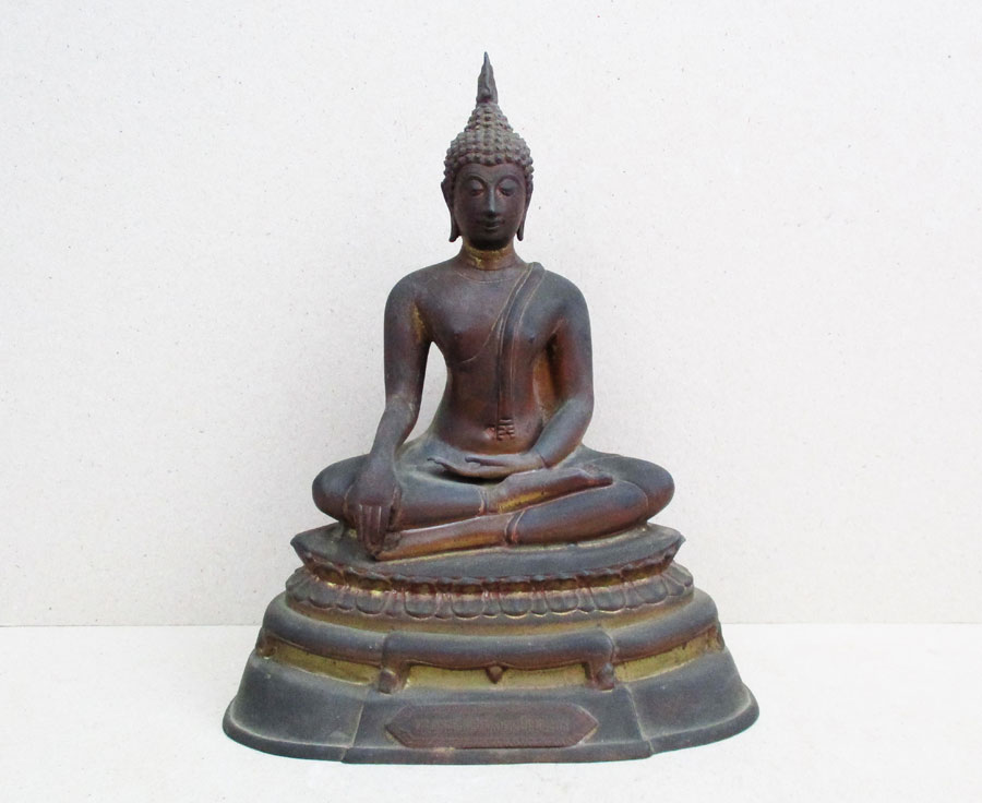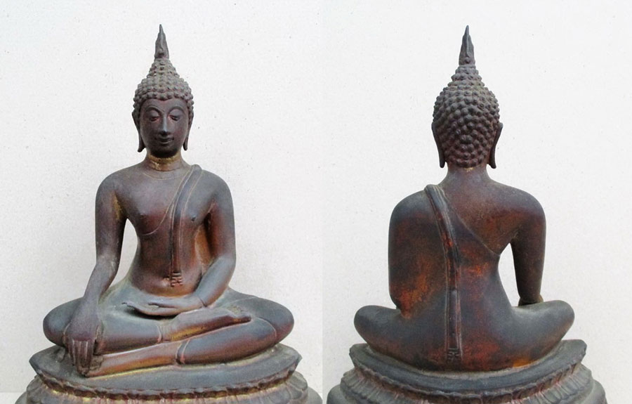 ฐานกว้าง 7.5 นิ้ว องค์พระกับฐานบัดกรีเชื่อมติดกัน หล่อดินไทยดำ !!