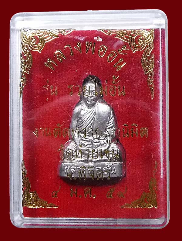 แดงที่เคาะแรก !!! รูปหล่อ เนื้ออัลปาก้า รุ่นรวยไม่อั้น หลวงพ่ออั้น วัดห้วยเขน ปี2559 + กล่องเดิม
