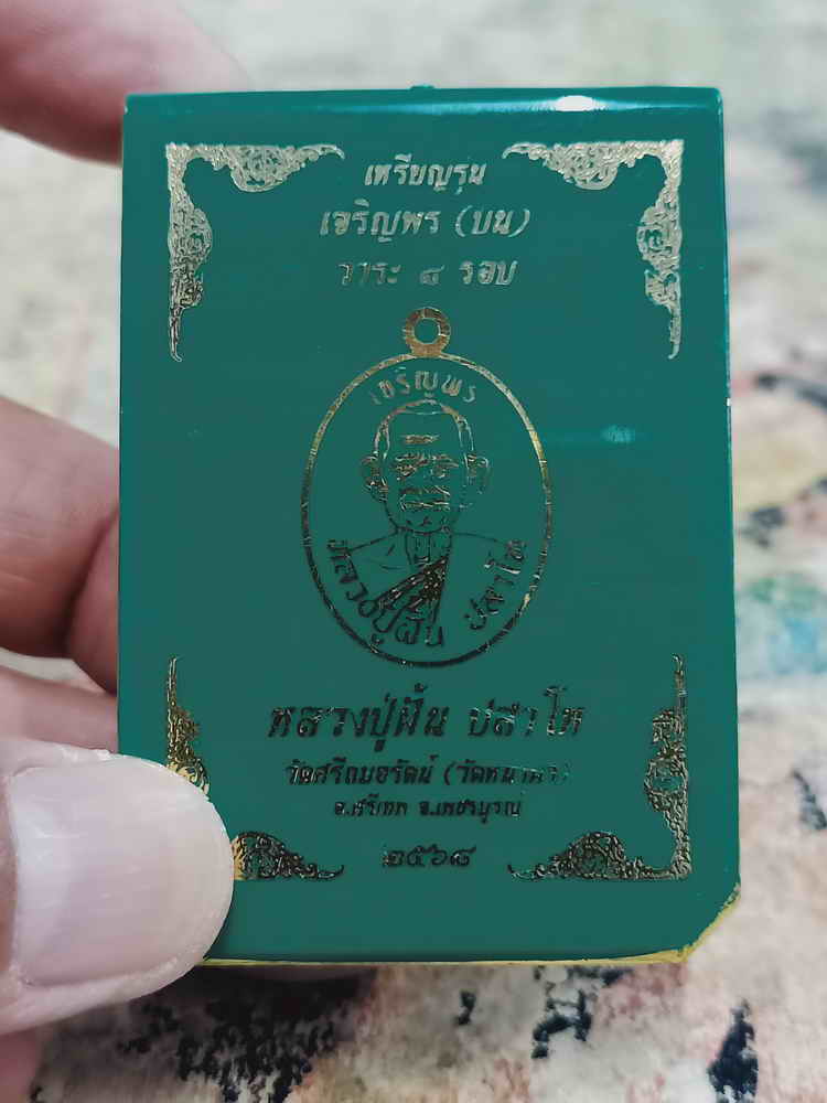 วัดใจ 100 เหรียญเจริญพรบน 8 รอบ หลวงปู่ฝั้น ปสาโท วัดศรีถมอรัตน์(วัดหน้าผา) อ.ศรีเทพ จ.เพชรบูรณ์ 2568 ทองแดงรมดำ จารหมึกทอง รวมโค้ด หมายเลข 49 กล่องเดิม