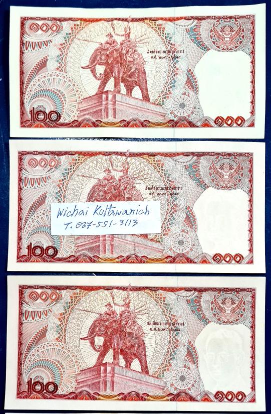ธนบัตร ร 9 แบบ 12 ชนิดราคา 100 บาท ช้างแดง ผ่านใช้น้อย สวยๆ 9หน้า-9หลัง 3 ใบ