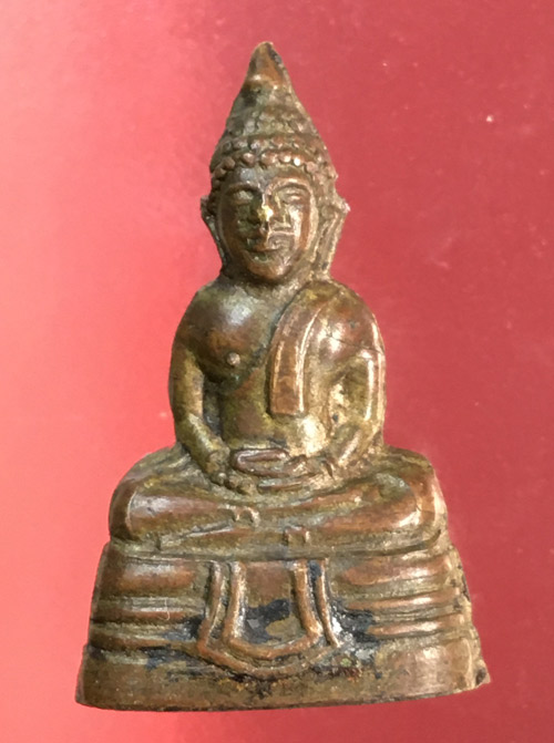 รูปหล่อปั้ม หลวงพ่อพระพุทธโสธร พิมพ์หน้าเล็ก บล็อกขี้มูก เนื้อทองเหลือง ปี 2500 จ.ฉะเชิงเทรา