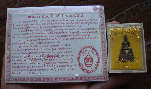 รูปหล่อ พระเจ้า 700 ปี ( เนื้อนวโลหะ) ปี2539 + เหรียญ เนื้อทองแดง ปี2539 ( 2 องค์ ) กล่องเดิม สวยครับ