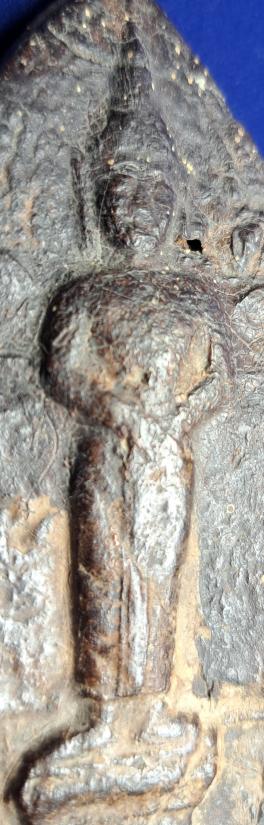 เนื้อสัมผัส: เมื่อเก่าจะแห้งหดตัว น้ำหนักเบา พิมพ์ไม่คมชัดเท่าพระเนื้อดิน.