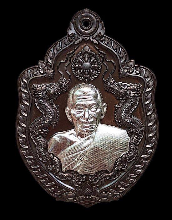 หลวงปู่มหาศิลา อายุวัฒนะมงคล81 มังกรคู่ เนื้อนวะหน้ากากเงิน เลข649กล่องเดิม จมูกโด่งๆ |