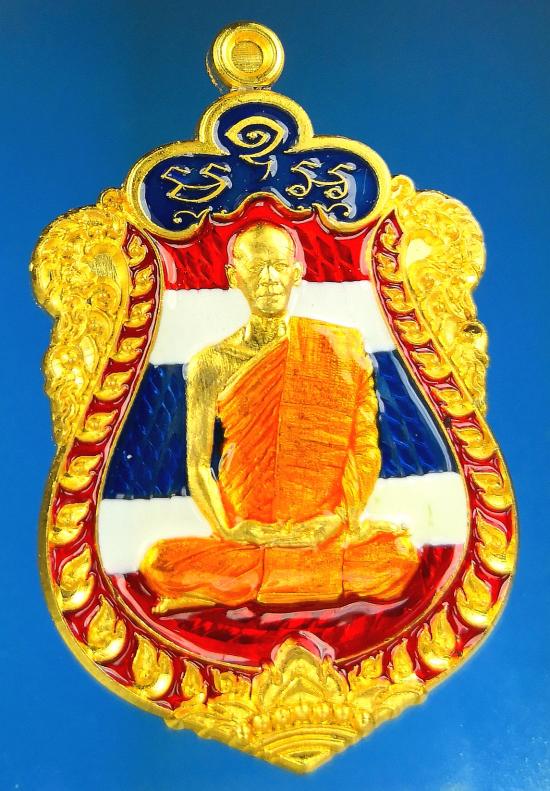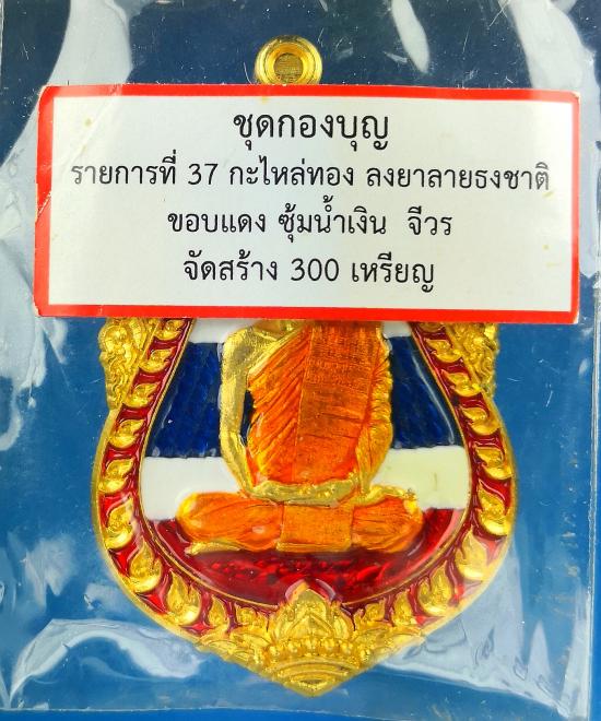 ชื่อพระเครื่อง 1300-เคาะเดียว เหรียญเสมาอุดมทรัพย์ พระอาจารย์ต้อม วัดท่าสะแบง ชุดกองบุญ เนื้อกะไหล่ทอง ลงยาธงชาติ ขอบแดง ชุ้มน้ำเงิน ลงยาจีวร เลข๑๓๔ เสมาใหญ่พิมพ์นิยม